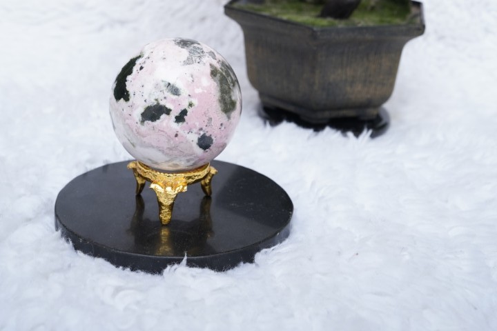 Experience emotional healing and self-love with the Rhodonite Sphere. A beautifully polished crystal that balances emotions, fosters forgiveness, and adds a soothing touch to any space.
